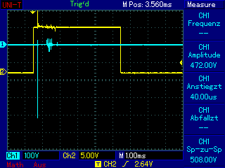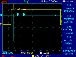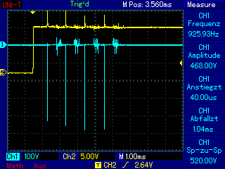 Trotzdem ist in Fehlerbeschreibungen zu eingesandten HKZ-Steuergeräten immer wieder folgender Satz zu lesen: " 12V werden nicht auf die Zündspule durchgeschaltet". Das verwundert auch nicht, da an der Zündspule nur im Zündmoment für ca. 20 Mikrosekunden ca. 400V anliegen. Mit Multimetern ist das Signal nicht meßbar. Messungen sind nur mit Oszilloskopen möglich, die über eine Zeitbasiseinstellung im 5 oder 10 Mikrosekundenbereich verfügen sollten.